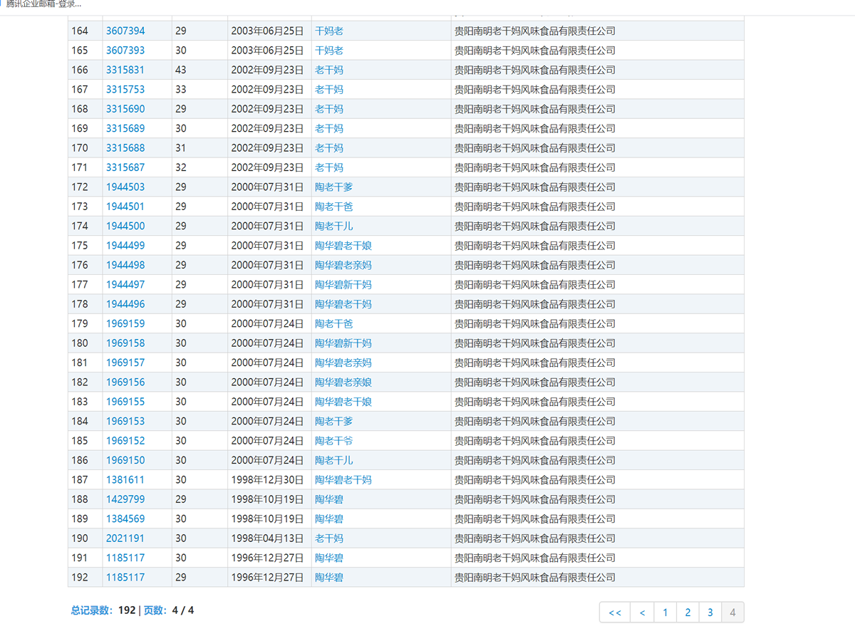 上图我们可以看到,从1996年开始,老干妈公司已经开始申请商标,对自己的核心品牌进行保护。然而随着时间推移,老干妈公司可能也意识到对近似商标进行保护的重要性,于是开始申请许多衍生词和近似的商标。